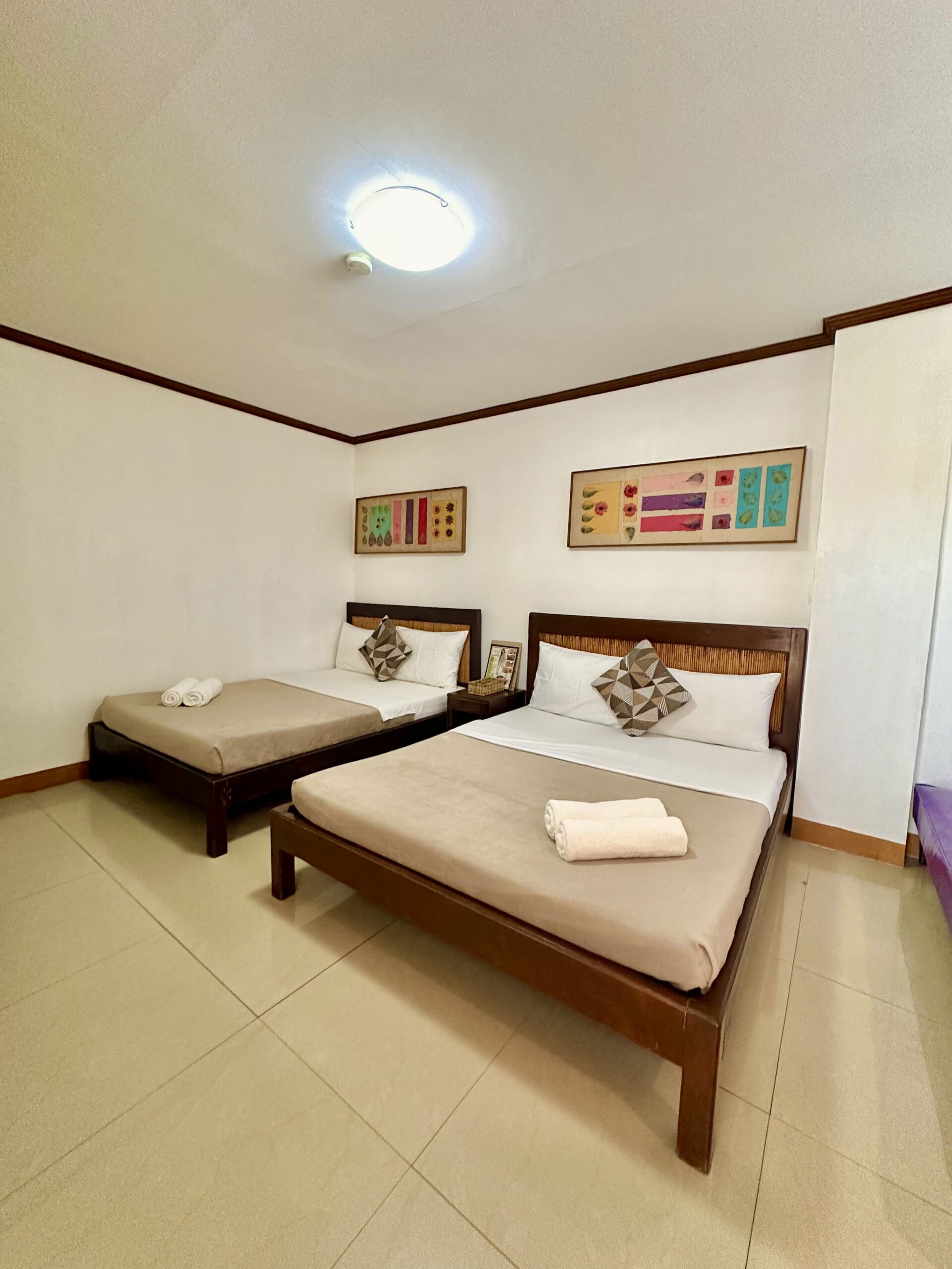 Our triple rooms have a queen-sized bed and a single bed and can accommodate up to three people. It’s perfect for families or a group of friends wishing to take the sights of Kalibo in or getting ready for a trip to Boracay or the surrounding areas. It comes with a TV with cable subscription, air conditioning and a hot/cold shower within the ensuite bathroom.